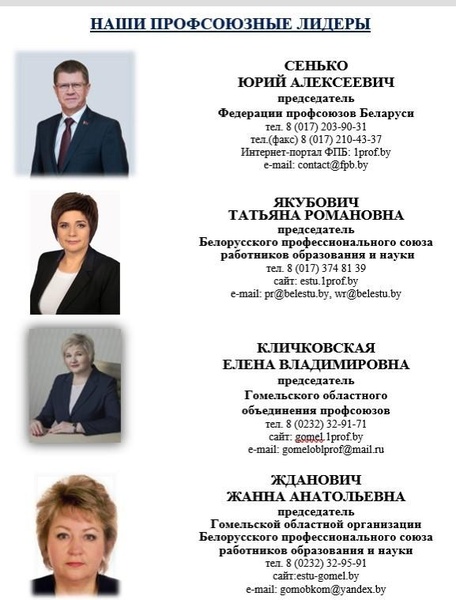 - главный правовой инспектор труда Гомельской областной организации Белорусского профессионального союза работников образования и науки |